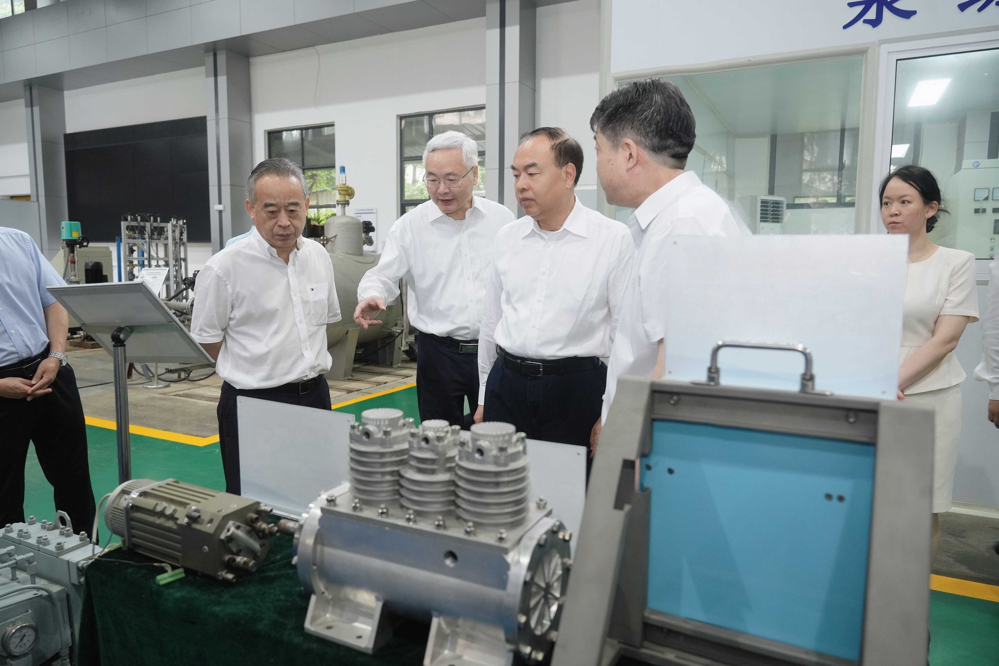 安徽省政协秘书长张岳峰、研究室主任马艾青等陪同调研。国机集团党委常委、副总经理、我院国家压力容器与管道安全工程技术研究中心主任陈学东院士,国机集团党委常委、副总经理、我院党委书记、董事长范志超,我院总经理陈晓红参加陪同。
